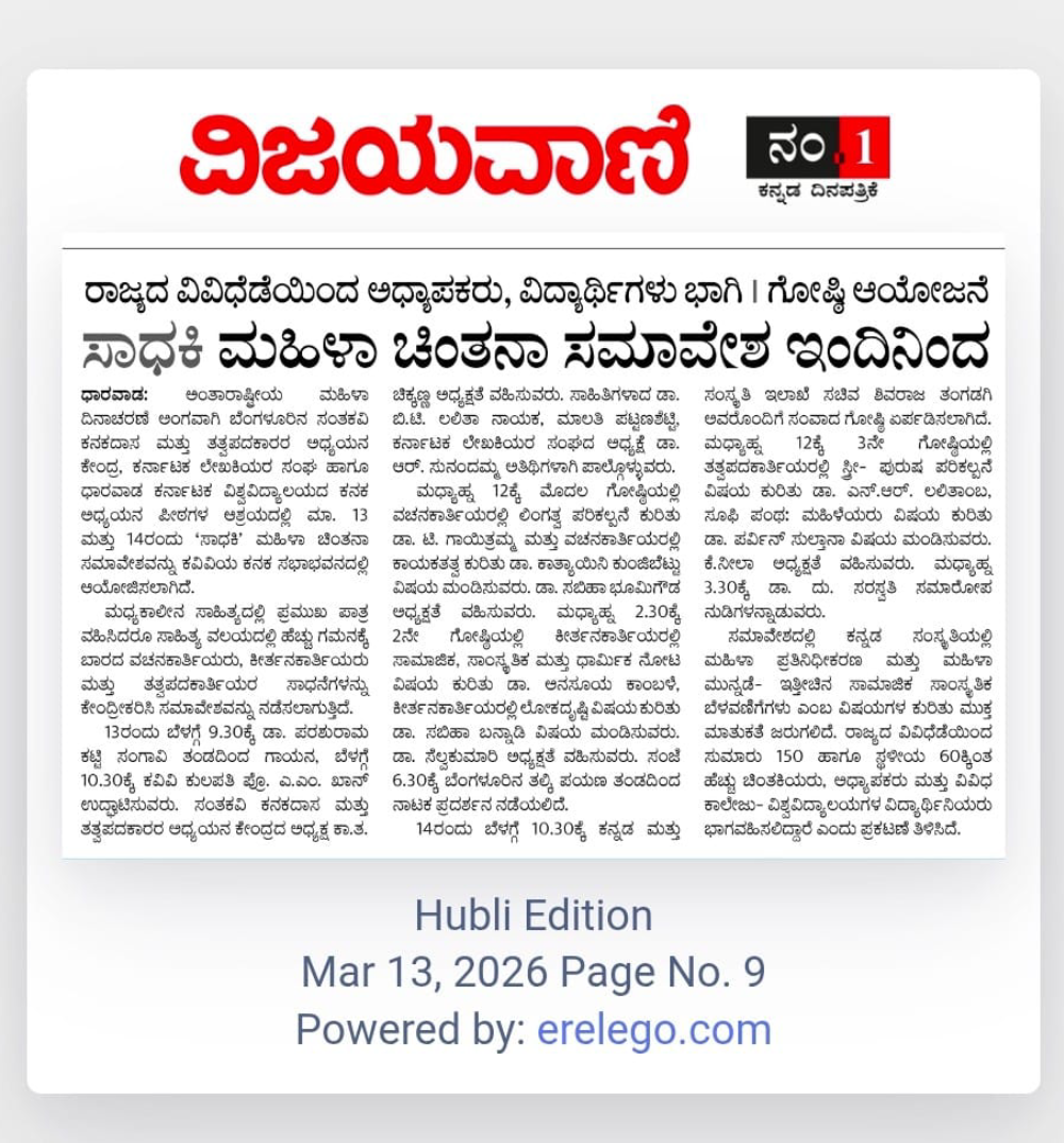 ಕವಿವಿಯಲ್ಲಿ ಸಾಧಕಿ ಮಹಿಳಾ ಚಿಂತನ ಸಮಾವೇಶ